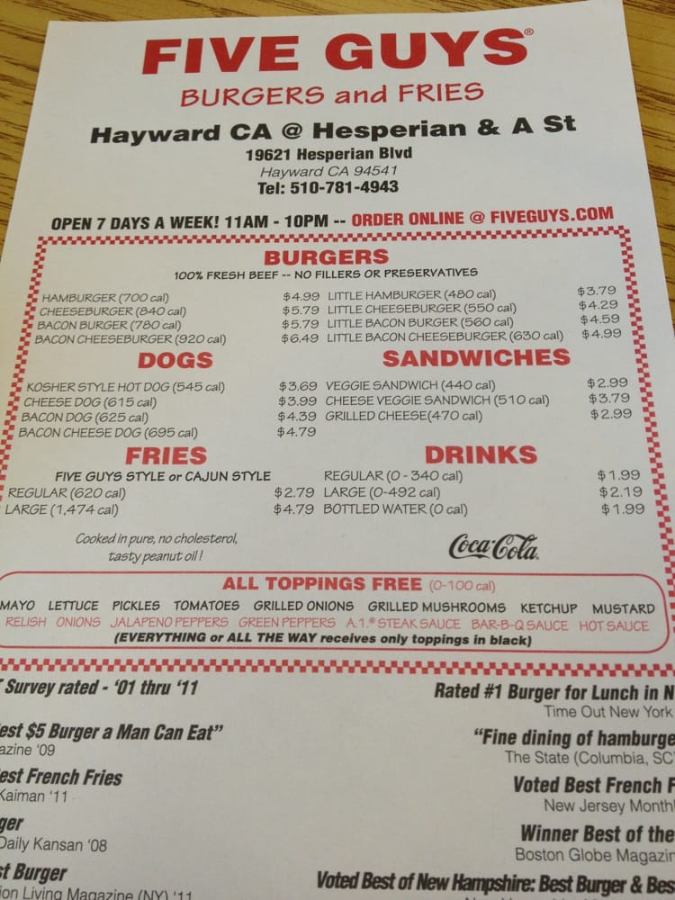 Welcome to Five Guys Hayward, a burger haven located at 19621 Hesperian Blvd, Hayward, CA. This eatery is known for its high-quality, customizable burgers, expertly grilled to juicy perfection. The menu is simple yet satisfying, with options that cater to all taste buds. Customers can enjoy anything from classic cheeseburgers to their signature fries, which are cooked in 100% peanut oil for that delightful crunch on the outside and fluffy warmth on the inside.